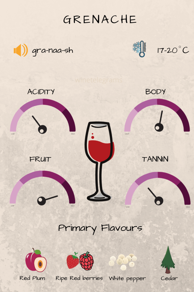 On its own, Grenache grape, sometimes, lacks the acidity and tannins but is used in many notable blends, Châteauneuf-du-Pape, Rhone GSM, Priorat, Rioja being some of the famous ones.