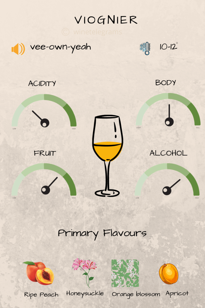 Other features of this wine include its low acidity, creamy texture and high alcohol levels. Most viogniers have at least 13% ABV. This dry wine often feels off-dry as the tropical fruits add a hint of fruity sweetness to it.