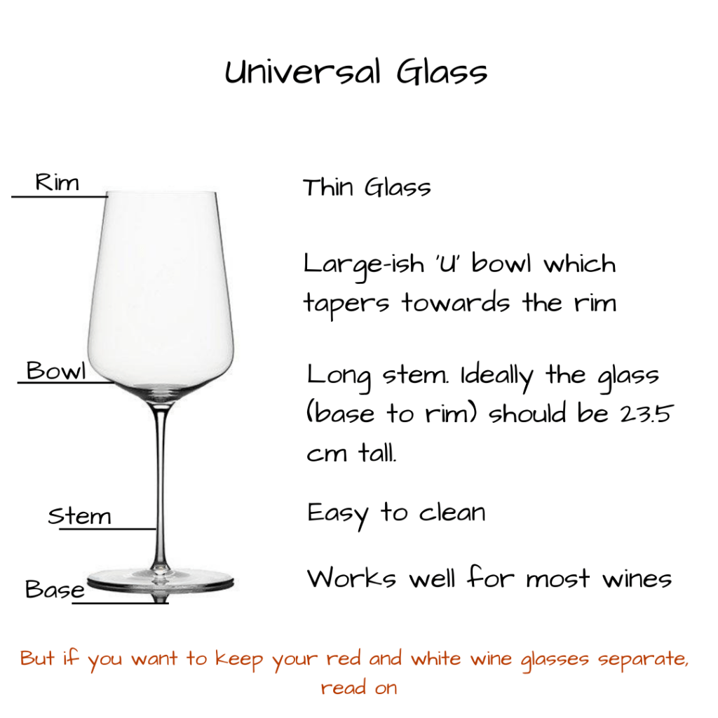 However, I am a believer of one Universal wine glass and I think it works really well for most types of wine.